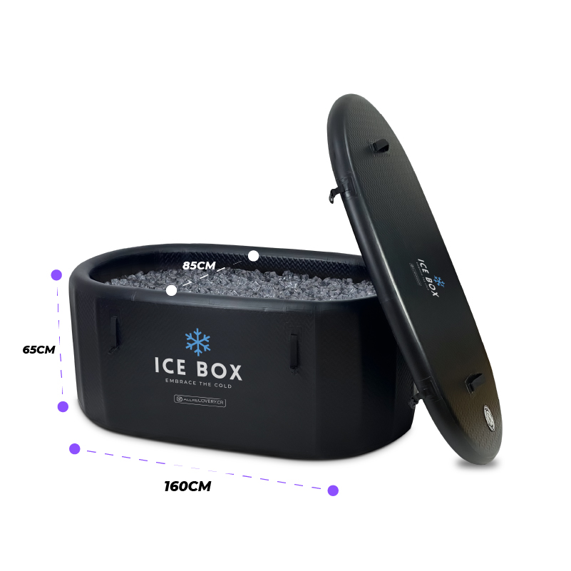 • El Ice Box Pro está fabricada con material de primera calidad (8 cm de grosor), impermeable y resistente a desgarros para un rendimiento duradero. Su construcción robusta garantiza que pueda soportar un uso frecuente y que mantenga la temperatura del agua fría hasta por días, lo que la convierte en una inversión ideal para personas que buscan soluciones de recuperación efectivas.